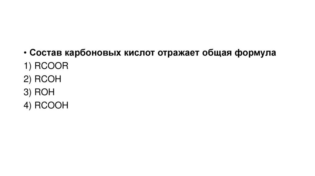 • Состав карбоновых кислот отражает общая формула1) RCOOR