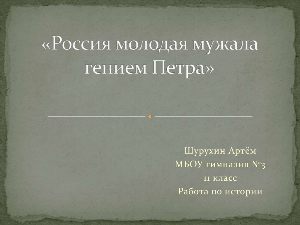 Россия молодая мужала гением Петра