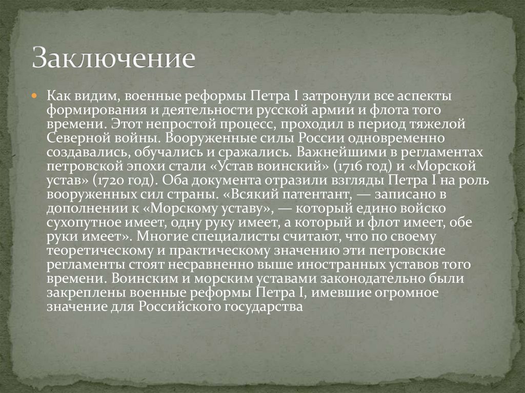 закреплены военные реформы Петра I, имевшие огромное
