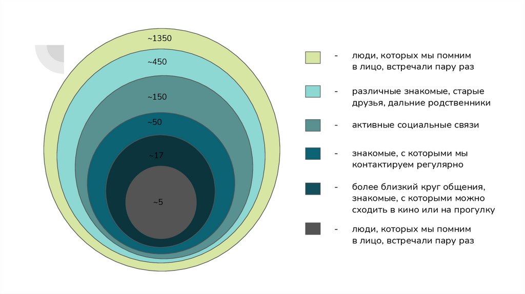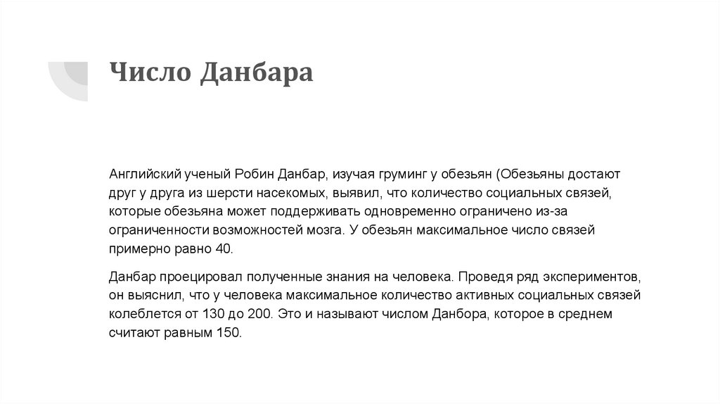 социальных связей. Данбар уточнил, что существуют и другие группы, побольше и