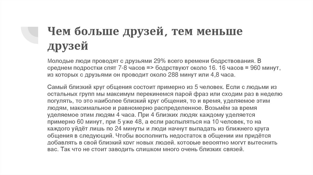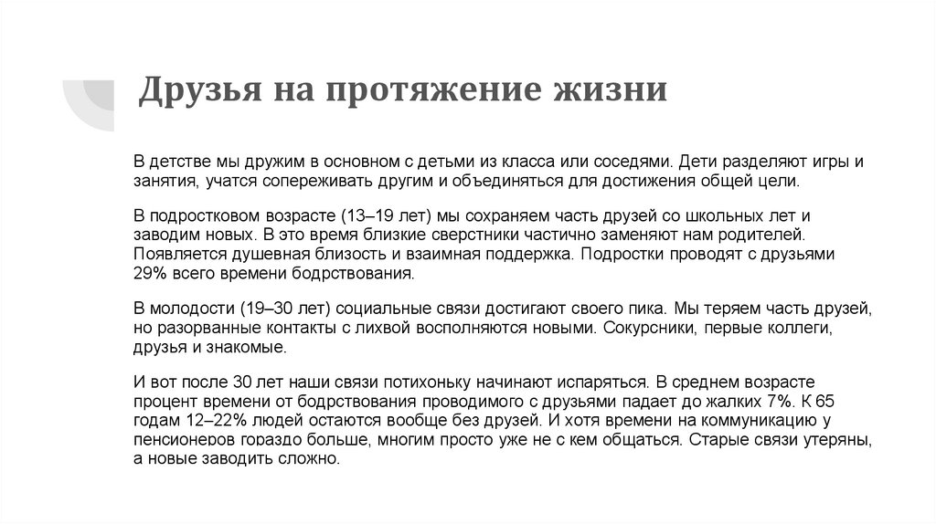 годам 12–22% людей остаются вообще без друзей. И хотя времени на коммуникацию у
