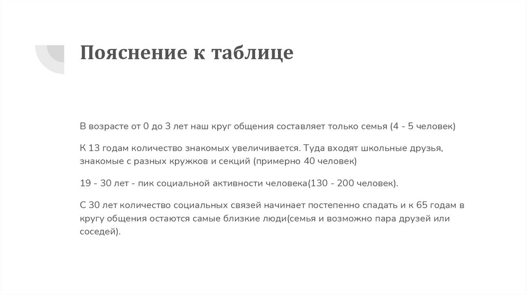 Пояснение к таблицеВ возрасте от 0 до 3 лет наш круг общения составляет только семья (4 - 5 человек)