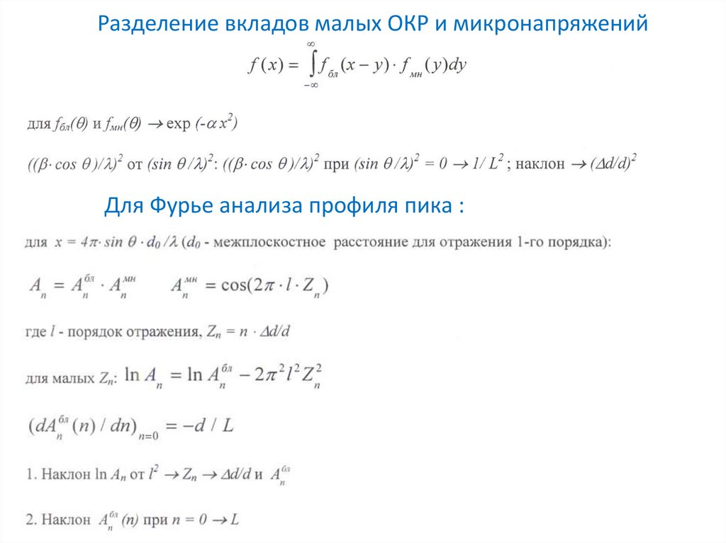 Разделение вкладов малых ОКР и микронапряженийДля Фурье анализа профиля пика :