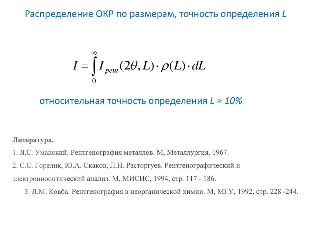 Распределение ОКР по размерам, точность определения LI I реш (2 , L) ( L) dL