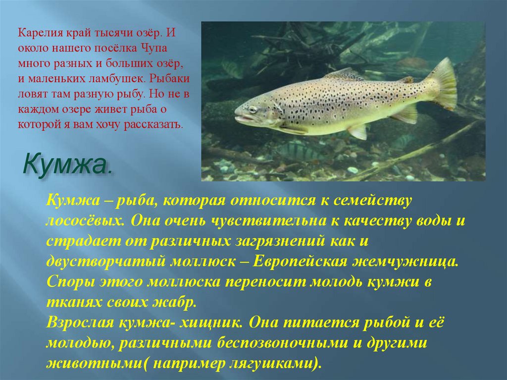 Взрослая кумжа- хищник. Она питается рыбой и её