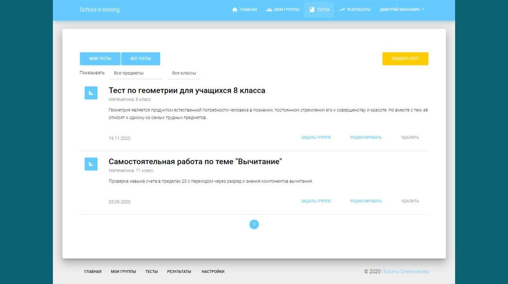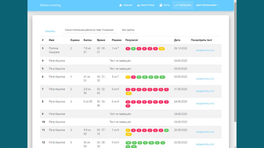 тесты... Готово! Ученики, зайдя в свои кабинеты,