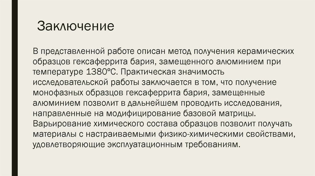 Изучение синтеза керамических материалов на основе гексаферрита бария, замещенного алюминием
