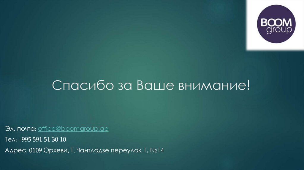Спасибо за Ваше внимание!Эл. почта: office@boomgroup.ge