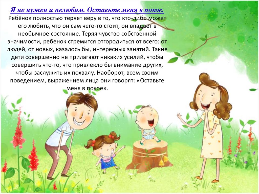 Я не нужен и нелюбим. Оставьте меня в покое.Ребёнок полностью теряет веру в то, что кто-либо может