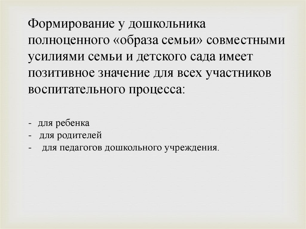 Формирование у дошкольникаполноценного «образа семьи» совместными
