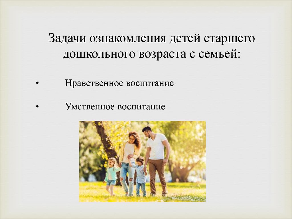 Задачи ознакомления детей старшегодошкольного возраста с семьей: