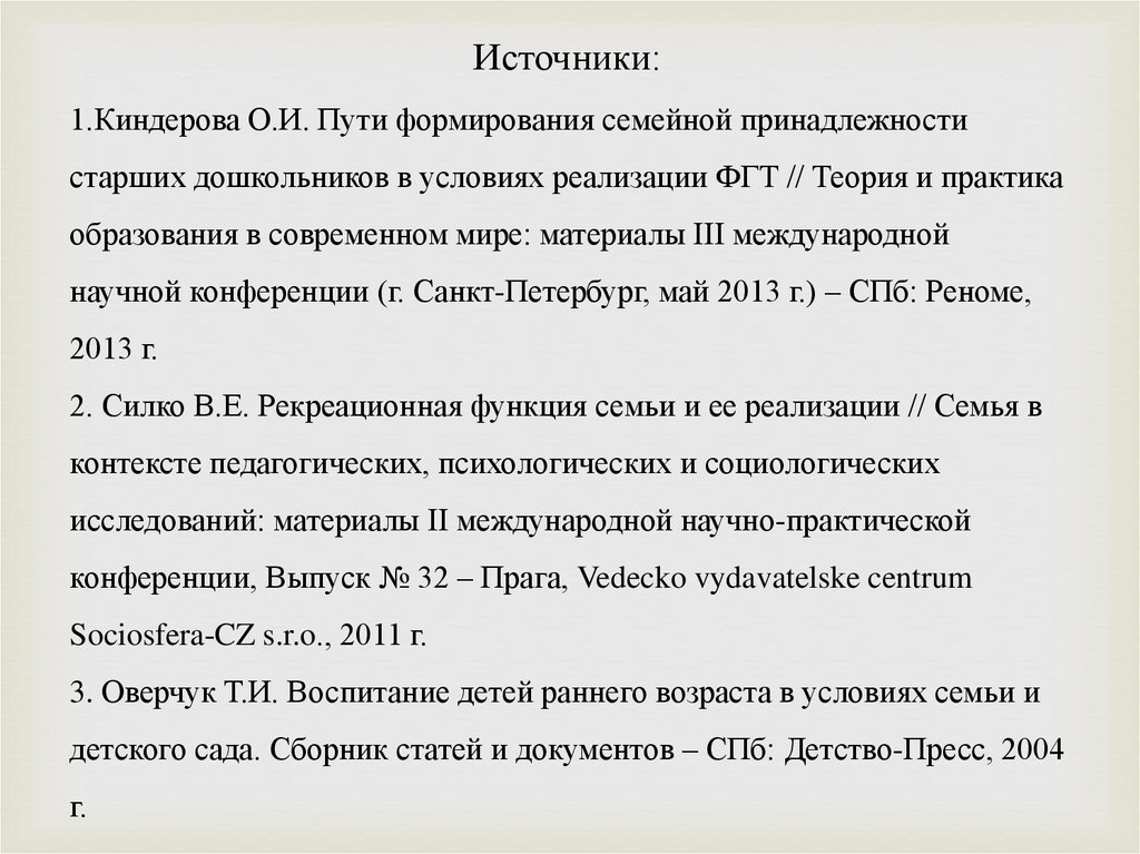 Источники:1.Киндерова О.И. Пути формирования семейной принадлежности