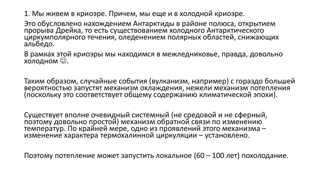 Людмила: объединить сказанное: Потепление ведет к похолоданию! Парадокс!