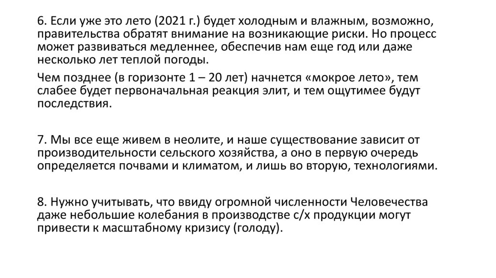 Естественная обработка в системе хозяйствования тоже пригодится. Мир будет фрагментарным. Цены на