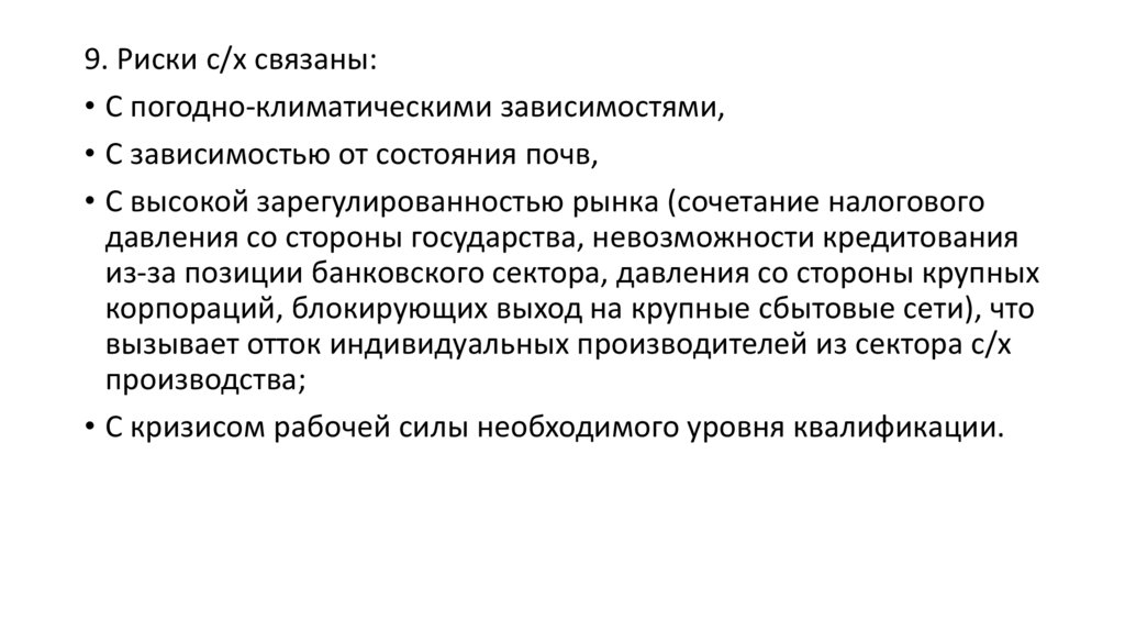 Идеи: Вопрос выживания и развития СХ. Нужно отталкиваться от того, где кто находится. И что с\х производит или