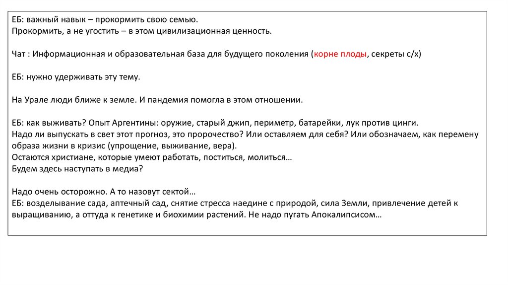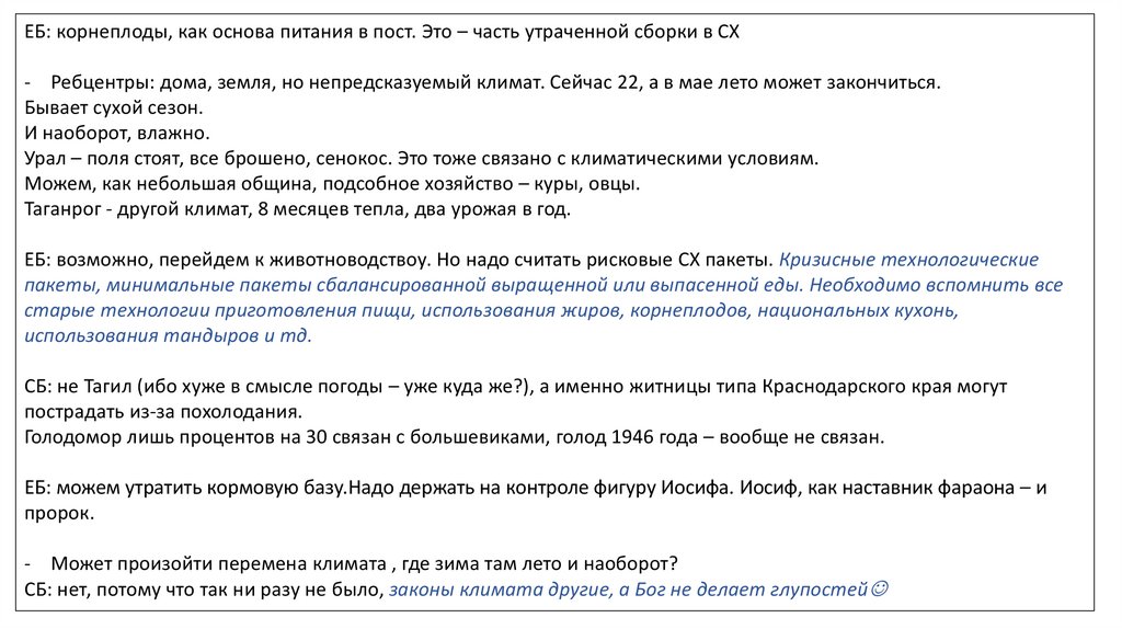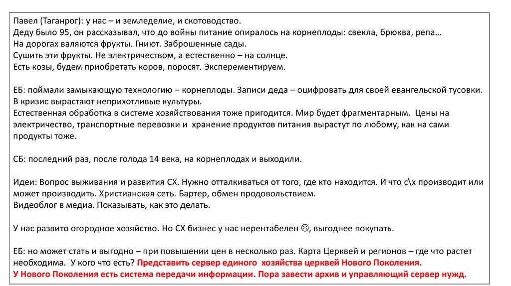 ЕБ: поймали замыкающую технологию – корнеплоды. Записи деда – оцифровать для своей евангельской тусовки.