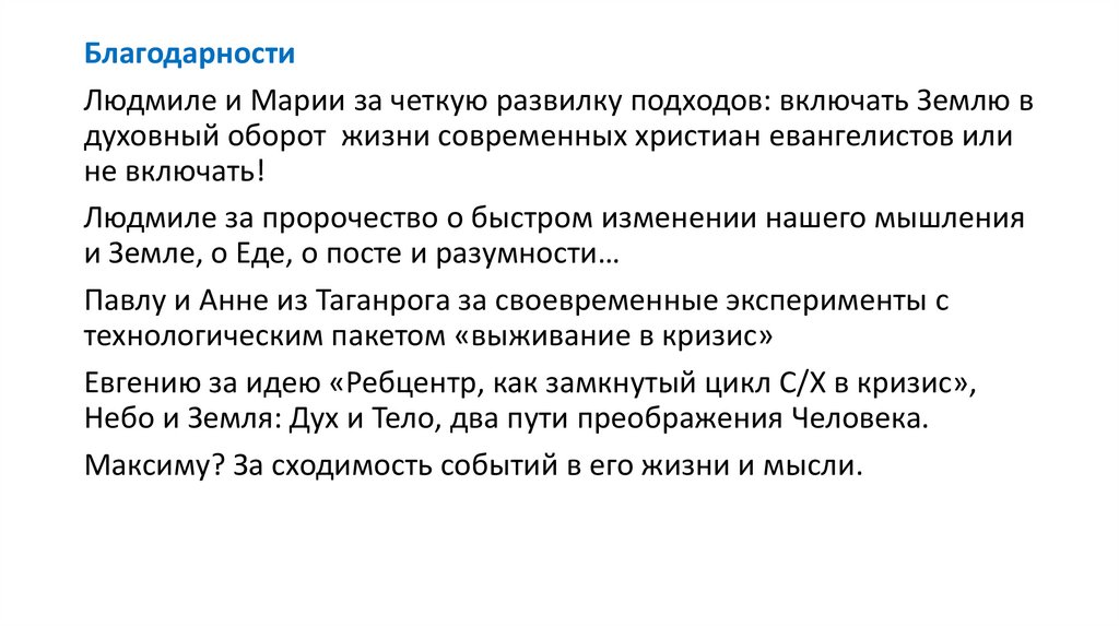 БлагодарностиЛюдмиле и Марии за четкую развилку подходов: включать Землю в