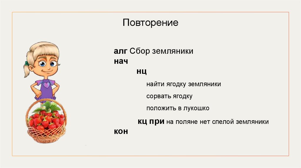 Основные алгоритмические конструкции. Повторение. Основы алгоритмизации