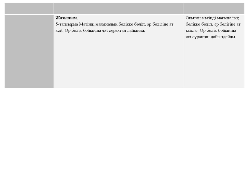 Жазылым.5-тапсырма Мәтінді мағыналық бөлікке бөліп, әр бөлігіне ат