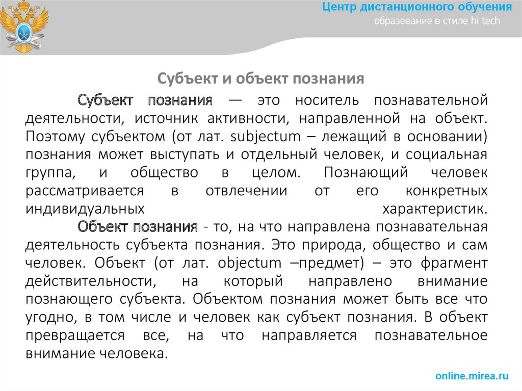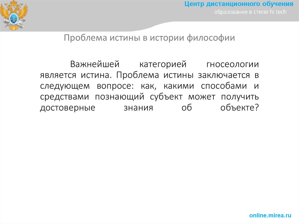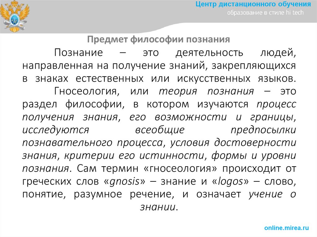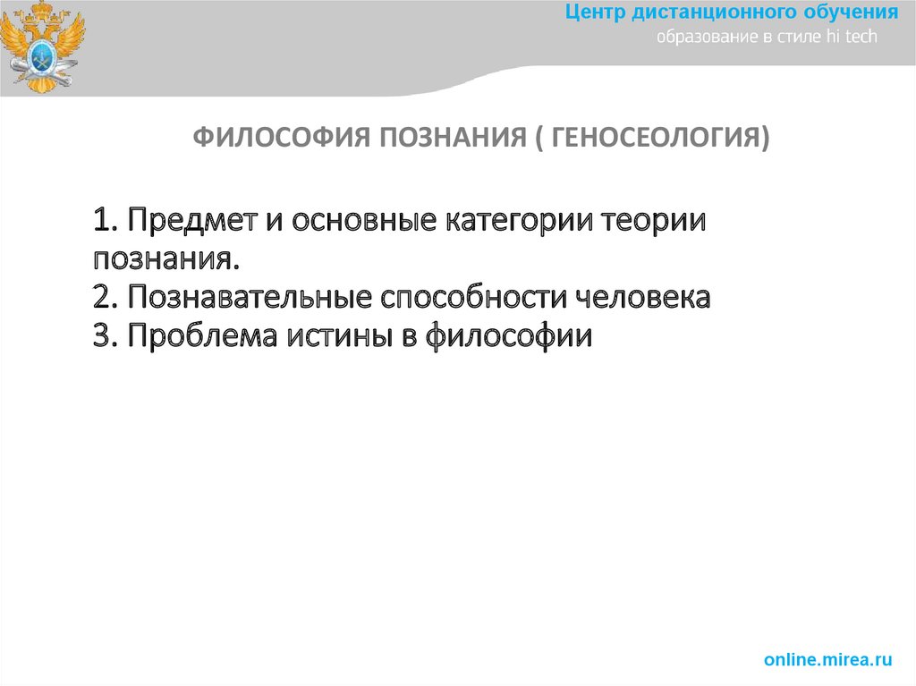 Центр дистанционного обученияФИЛОСОФИЯ ПОЗНАНИЯ ( ГЕНОСЕОЛОГИЯ)