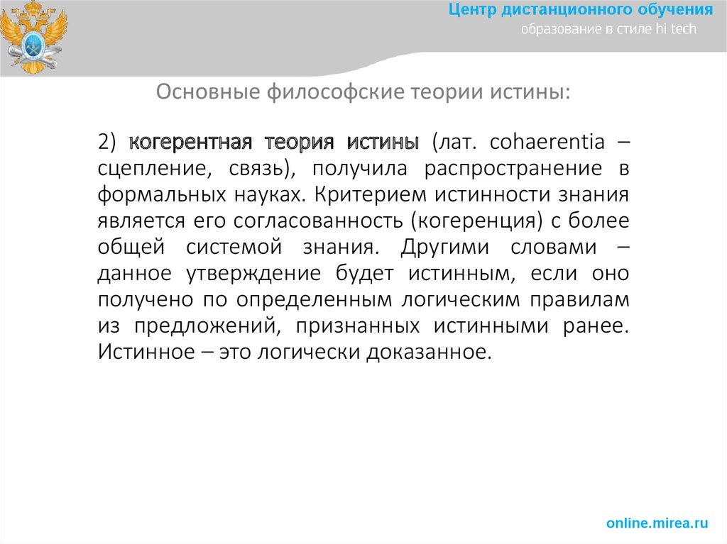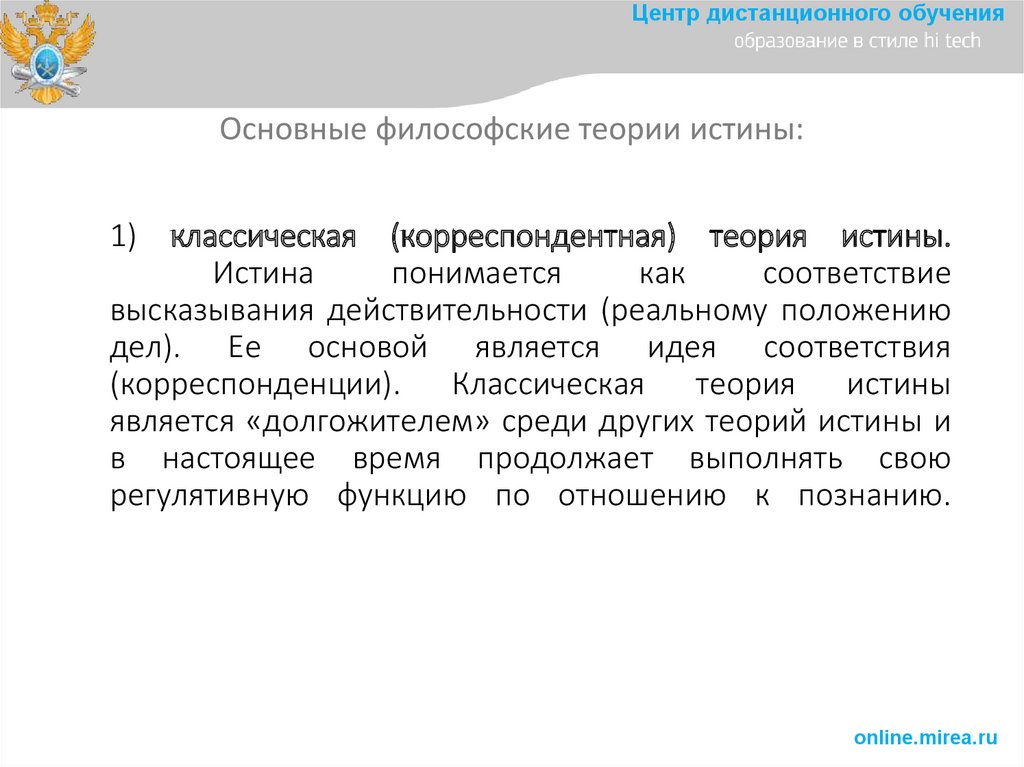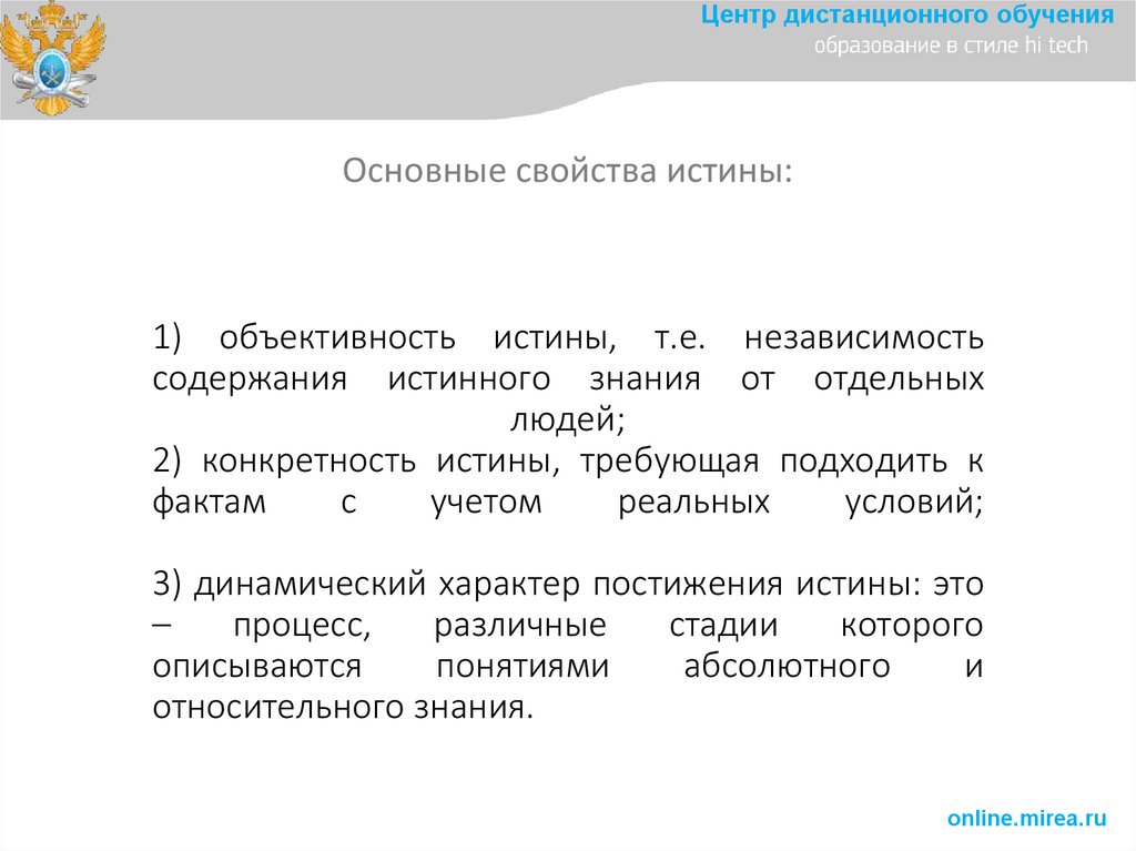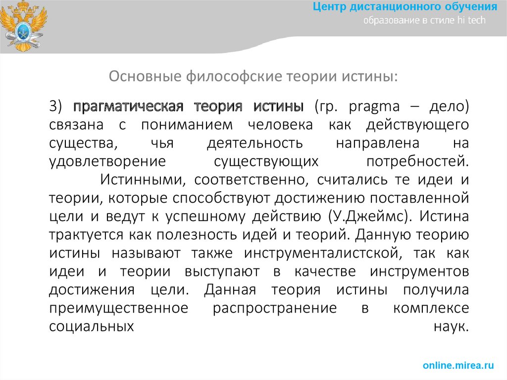 цели и ведут к успешному действию (У.Джеймс). Истина