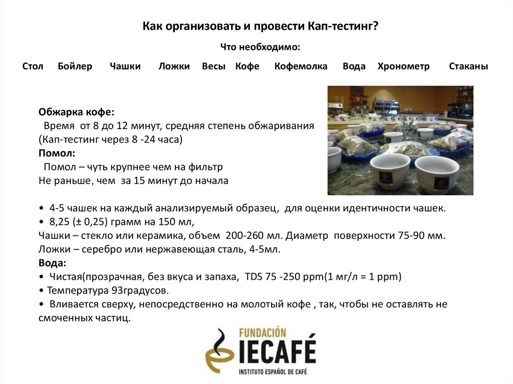 • Подготовить образец обжаренного и зеленого кофе.