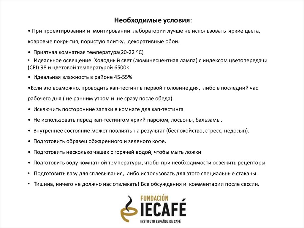 Необходимые условия:• При проектировании и монтировании лаборатории лучше не использовать яркие цвета,