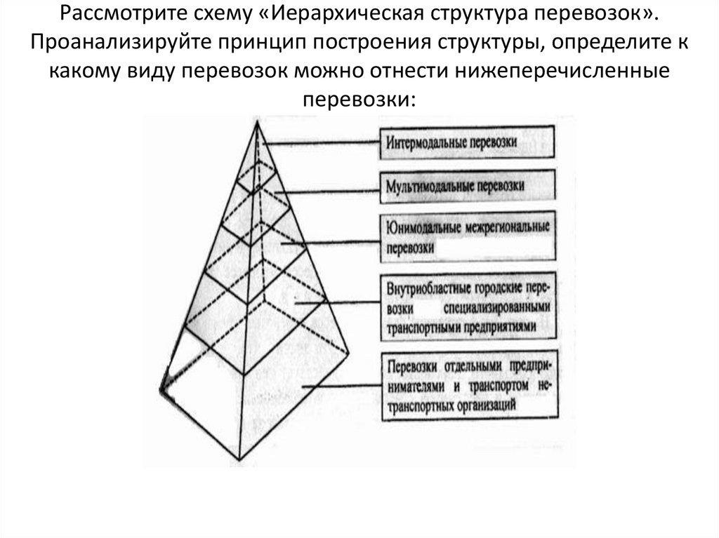 Рассмотрите схему «Иерархическая структура перевозок».Проанализируйте принцип построения структуры, определите к