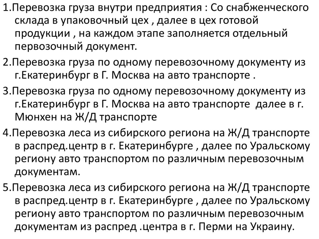 1.Перевозка груза внутри предприятия : Со снабженческогосклада в упаковочный цех , далее в цех готовой
