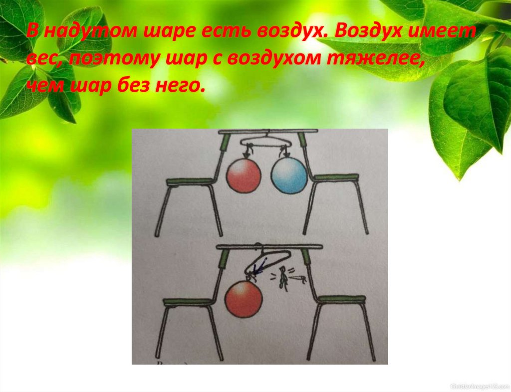 В надутом шаре есть воздух. Воздух имеетвес, поэтому шар с воздухом тяжелее,