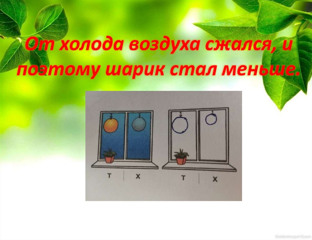 От холода воздуха сжался, ипоэтому шарик стал меньше.