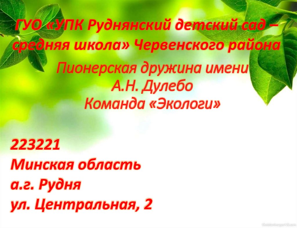 ГУО «УПК Руднянский детский сад –средняя школа» Червенского района