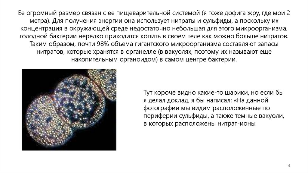 Таким образом, почти 98% объема гигантского микроорганизма составляют запасы