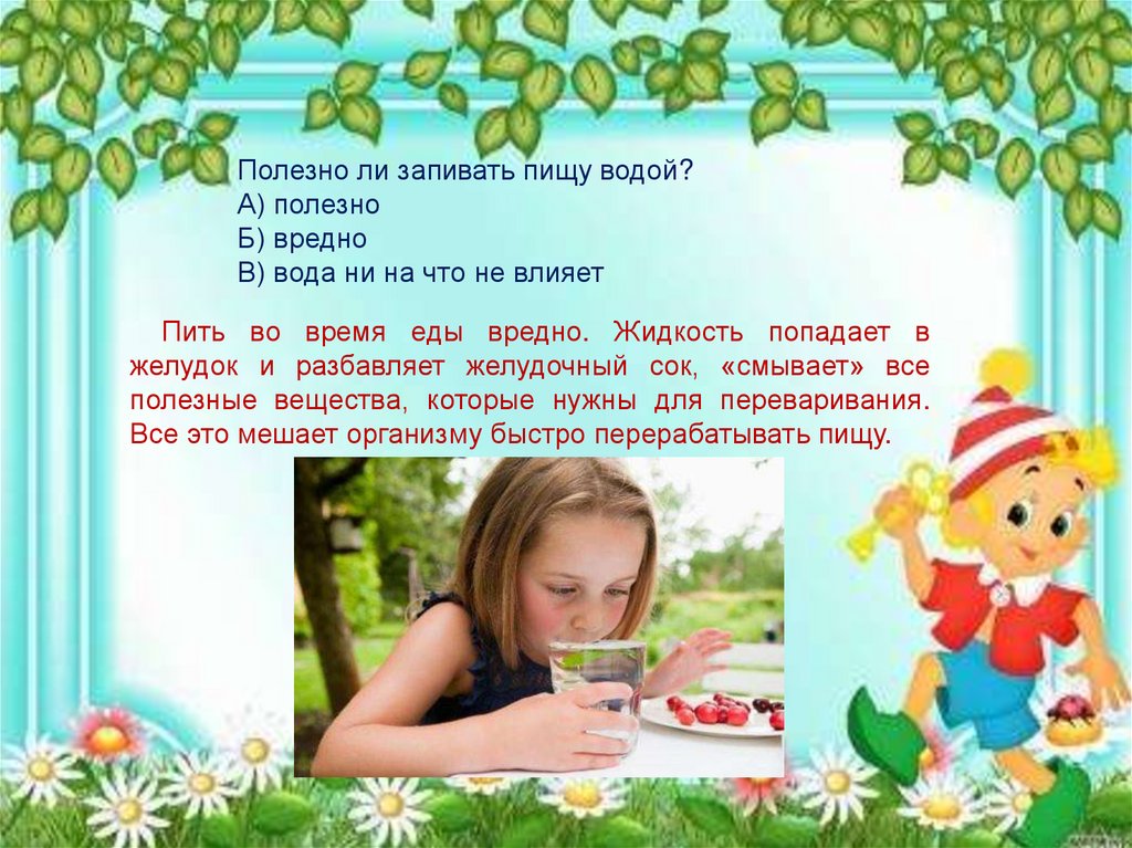 Полезно ли запивать пищу водой?А) полезно