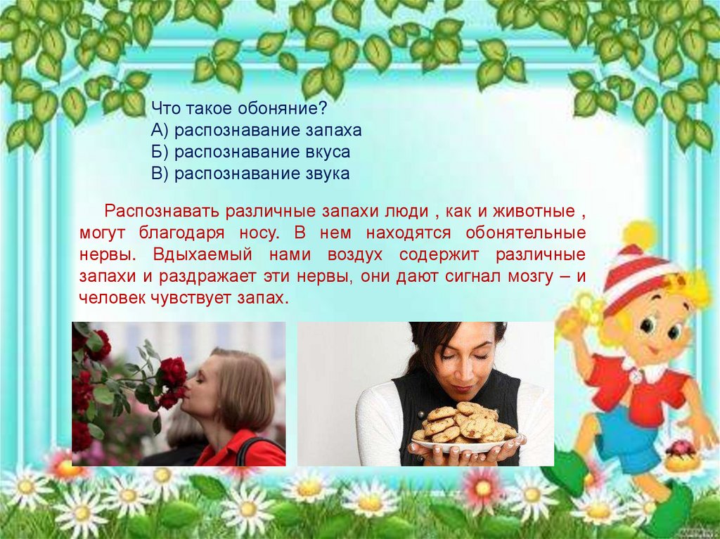 Что такое обоняние?А) распознавание запаха