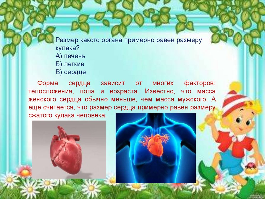 еще считается, что размер сердца примерно равен размеру