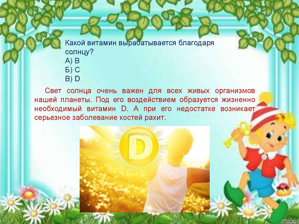 Какой витамин вырабатывается благодарясолнцу?