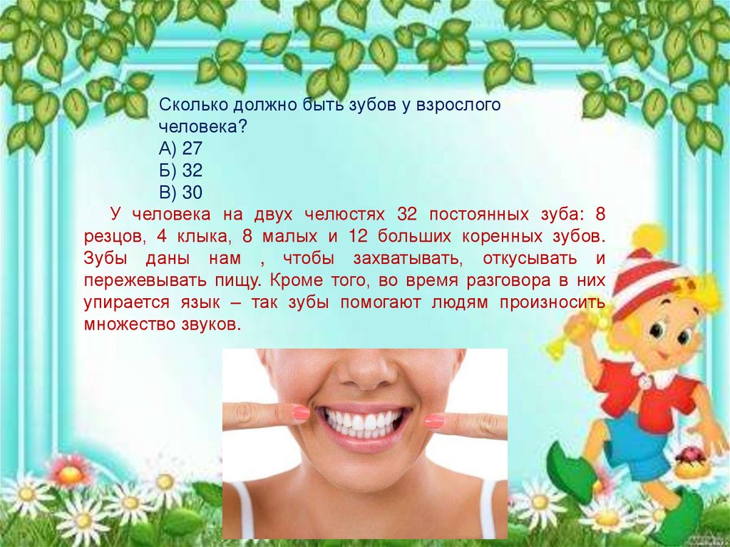 Сколько должно быть зубов у взрослогочеловека?
