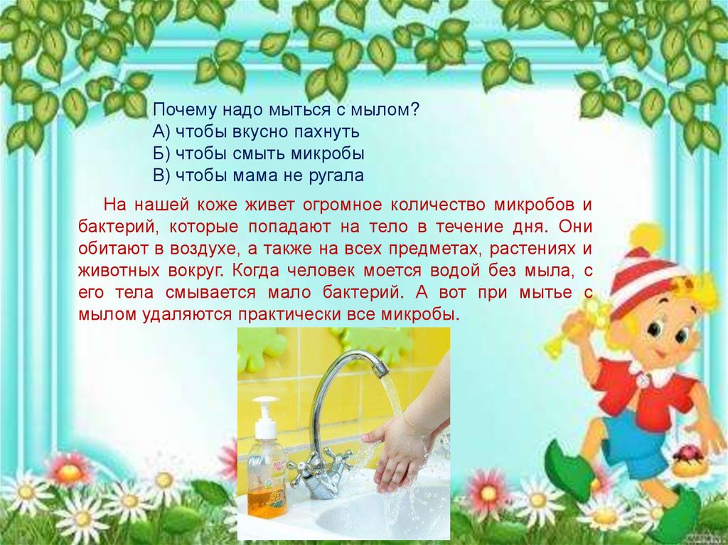 Почему надо мыться с мылом?А) чтобы вкусно пахнуть