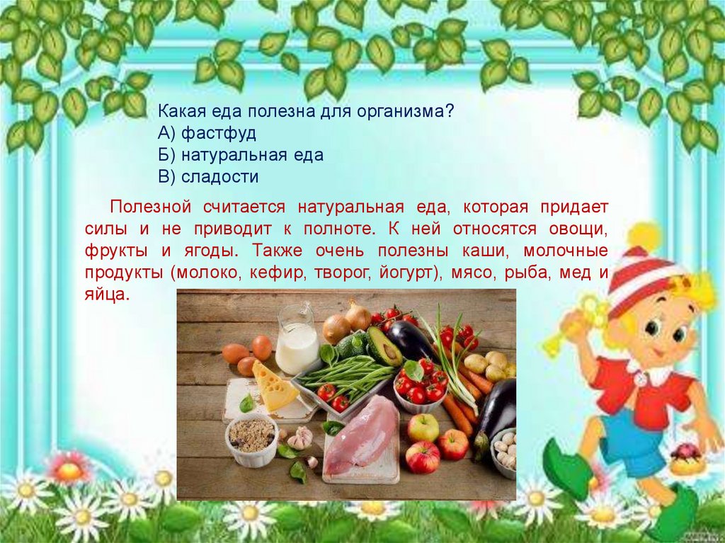Какая еда полезна для организма?А) фастфуд