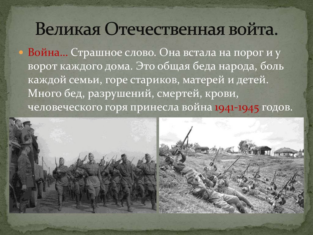Война… Страшное слово. Она встала на порог и уворот каждого дома. Это общая беда народа, боль