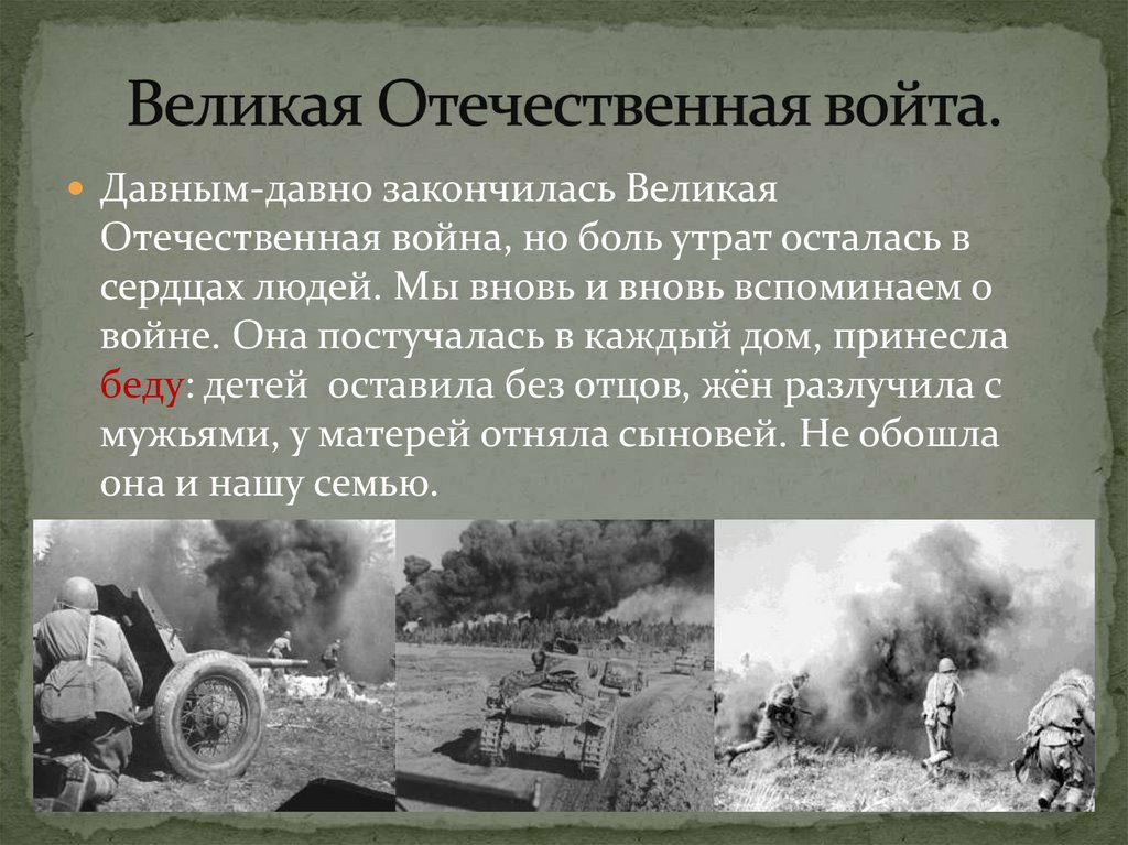 До сих пор мы помним о войне, потому что онапринесла беду всем семья. Забыть это нельзя.