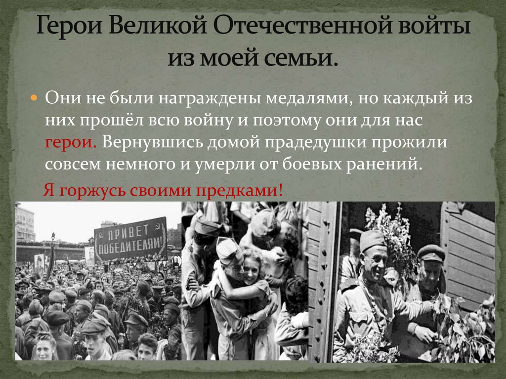 Герои Великой Отечественной войтыиз моей семьи.