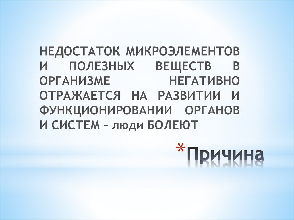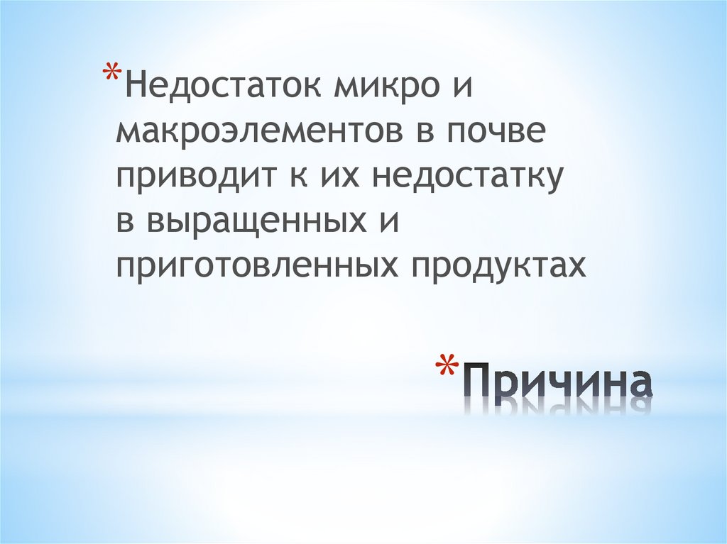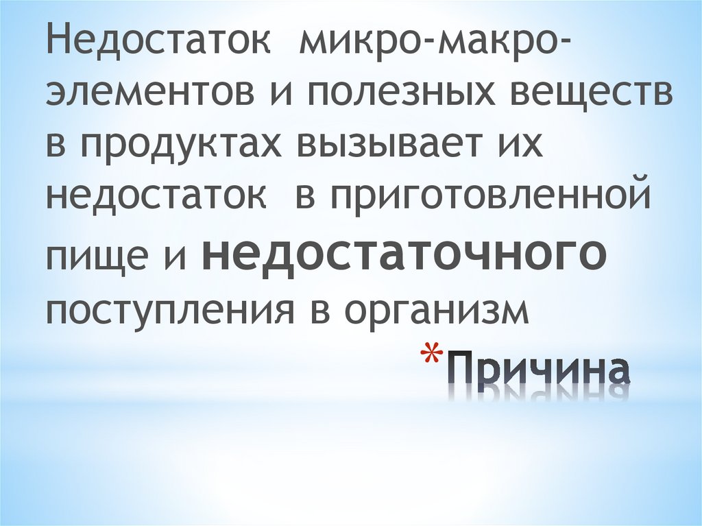 Недостаток микро-макроэлементов и полезных веществв продуктах вызывает их