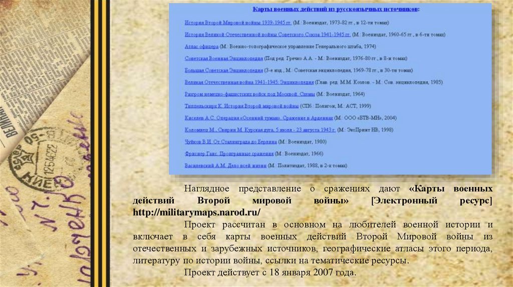 литературу по истории войны, ссылки на тематические ресурсы.