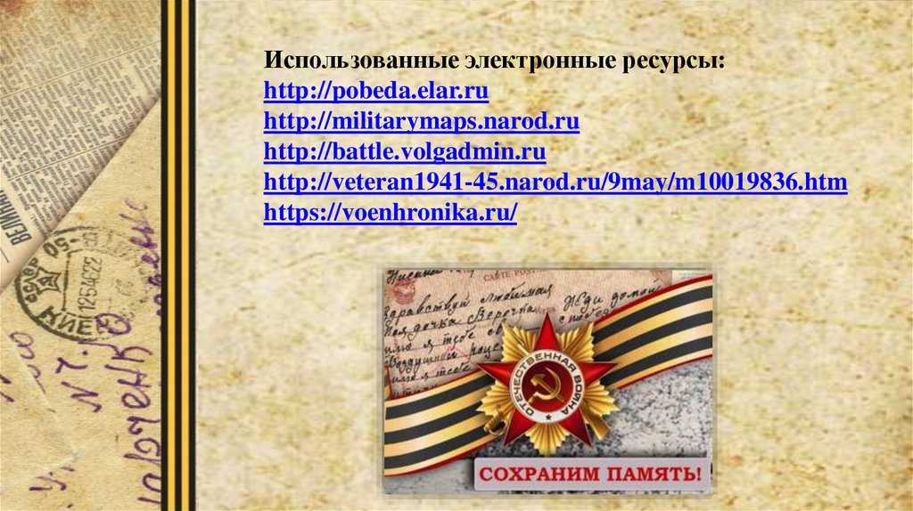 Использованные электронные ресурсы:http://pobeda.elar.ru