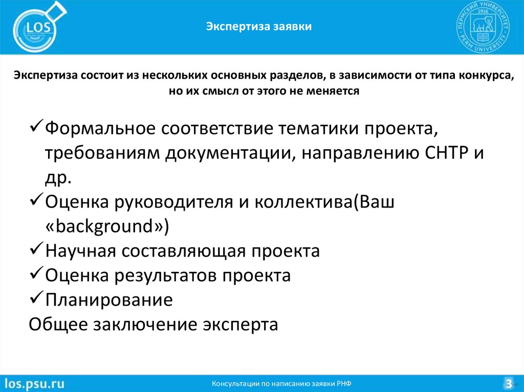 Консультации по написанию заявки РНФНесколько комментариев от эксперта