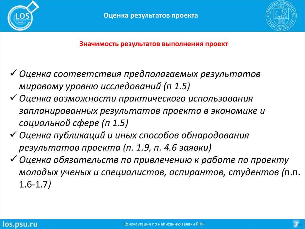 Оценка результатов проектаЗначимость результатов выполнения проект