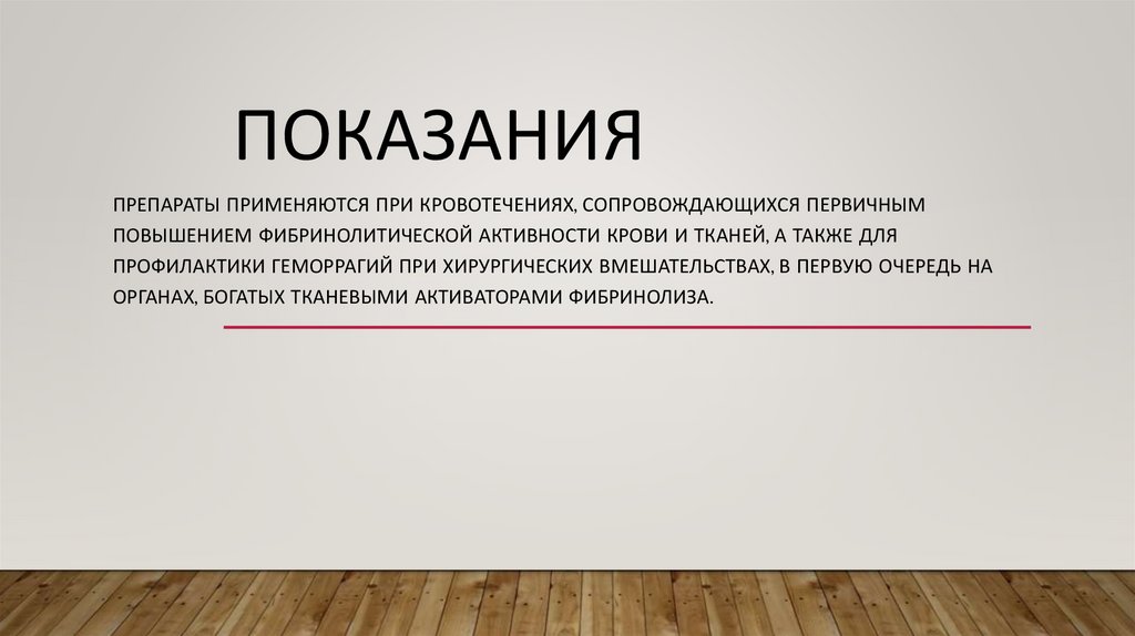 ПОКАЗАНИЯПРЕПАРАТЫ ПРИМЕНЯЮТСЯ ПРИ КРОВОТЕЧЕНИЯХ, СОПРОВОЖДАЮЩИХСЯ ПЕРВИЧНЫМ