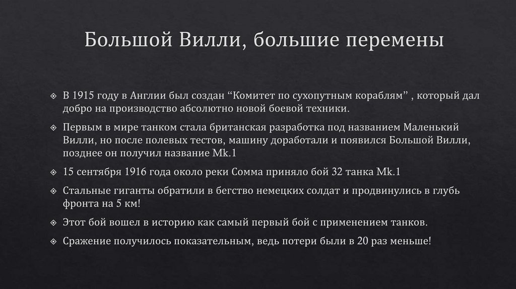 Эволюция танкостроения времён Первой мировой войны